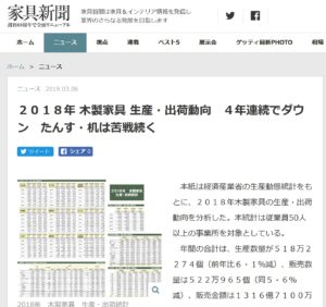 2018年 木製家具4年連続でダウン
