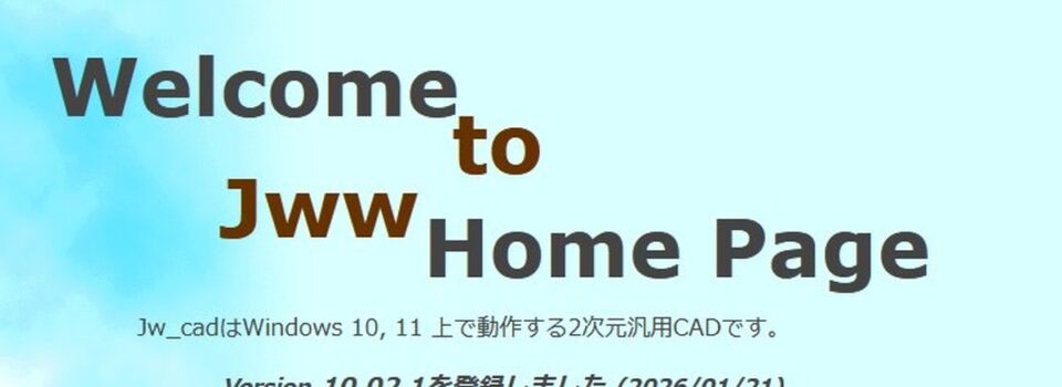 2026年1月21日、Jw_cadの最新版 Version 10.02.1 が公式サイトにて公開されました。当社でも日常的にJw_cadを使用しており、長年お世話になっているソフトウェアの作者の方々に改めて感謝いたします。